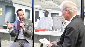 AIE CEO Leon Smalberger (left) interviewed by Engineering News & Mining Weekly’s Martin Creamer.
