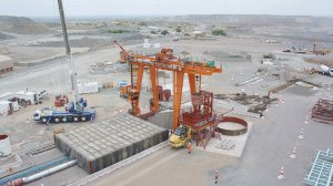 At Venetia Mine, the pre-sink gantry arrangement included a blast cover and kibble tipping system, designed to protect workers and equipment during early shaft sinking