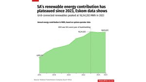 SA's renewable energy contribution has plateaued since 2023, Eskom data shows