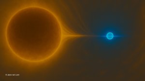 “We are essentially witnessing a ‘phoenix’ rising from the ashes,” explains van Loon. “The atmosphere of the red supergiant is being stretched out by the approach of the companion star, but it has not been stripped altogether. It persists.”