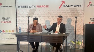Harmony FD Boipelo Lekubo, CEO Beyers Nel answering questions.