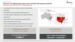 The CSA mine, which is Australia's highest-grade copper mine with a reserve grade of above 3.4% and more than 12 years of reserve life, provides immediate copper.
