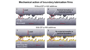 Film Formation – depending on the type of EP additive, the reaction products form a smooth protective layer, which may be crystalline or amorphous in structure. This film reduces friction and metal-to-metal contact, providing a smooth, lubricating film to protect surfaces under high pressure.