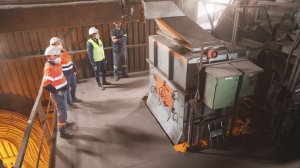 At this steel plant, a Weba transfer chute is shown managing heavy material flow while effectively lowering dust emissions in a demanding environment